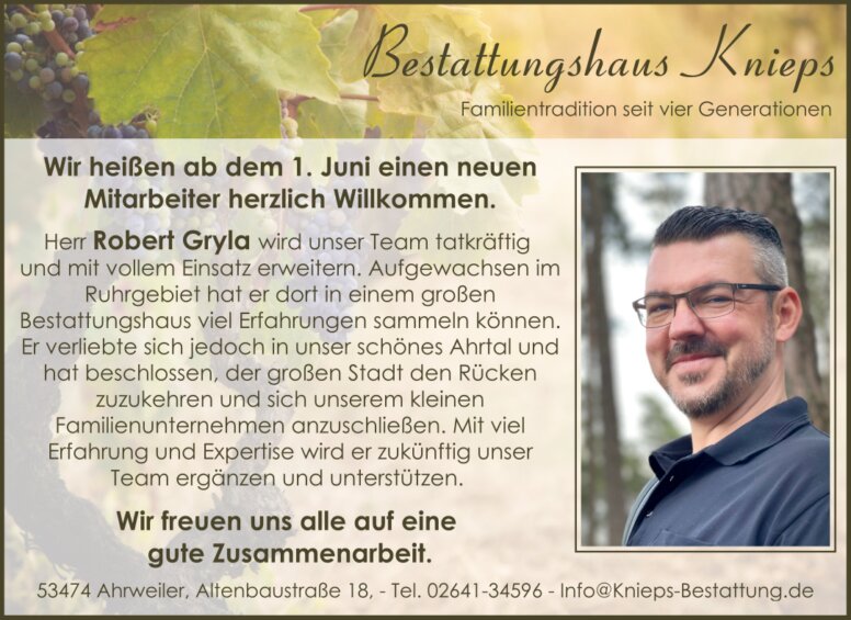 unseren neuen Mitarbeiter Robert Gryla willkommen.