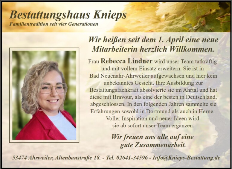 unsere neue Mitarbeiterin Rebecca Lindner willkommen.